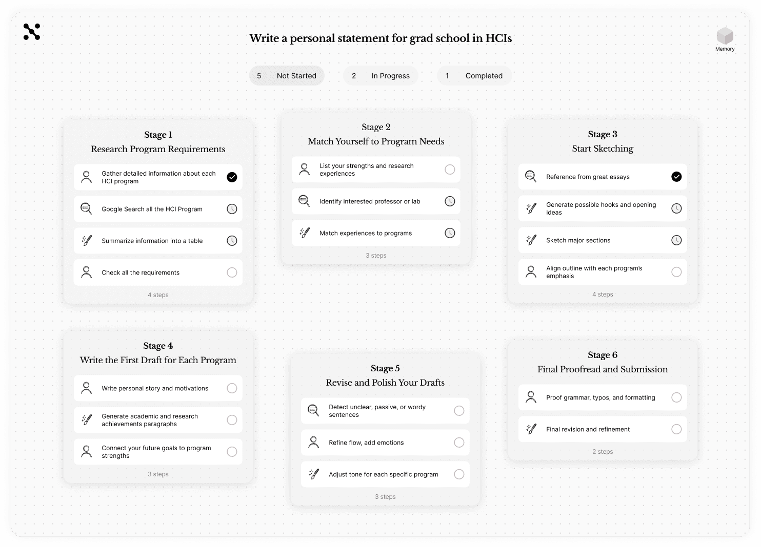 haX takes your big idea and breaks it down into step-by-step tasks, so you never get stuck. No more blank pages or planning paralysis.